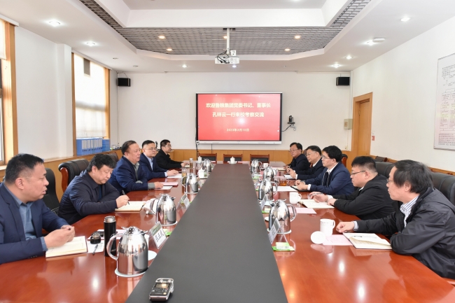 近日,鲁粮集团党委书记、董事长孔祥云一行来校考察对接工作。党委书记徐剑波会见客人,围绕拓展校企合作,共同为维护国家粮食安全贡献力量进行深入交流。党委副书记、校长冷畅俭与客人座谈。