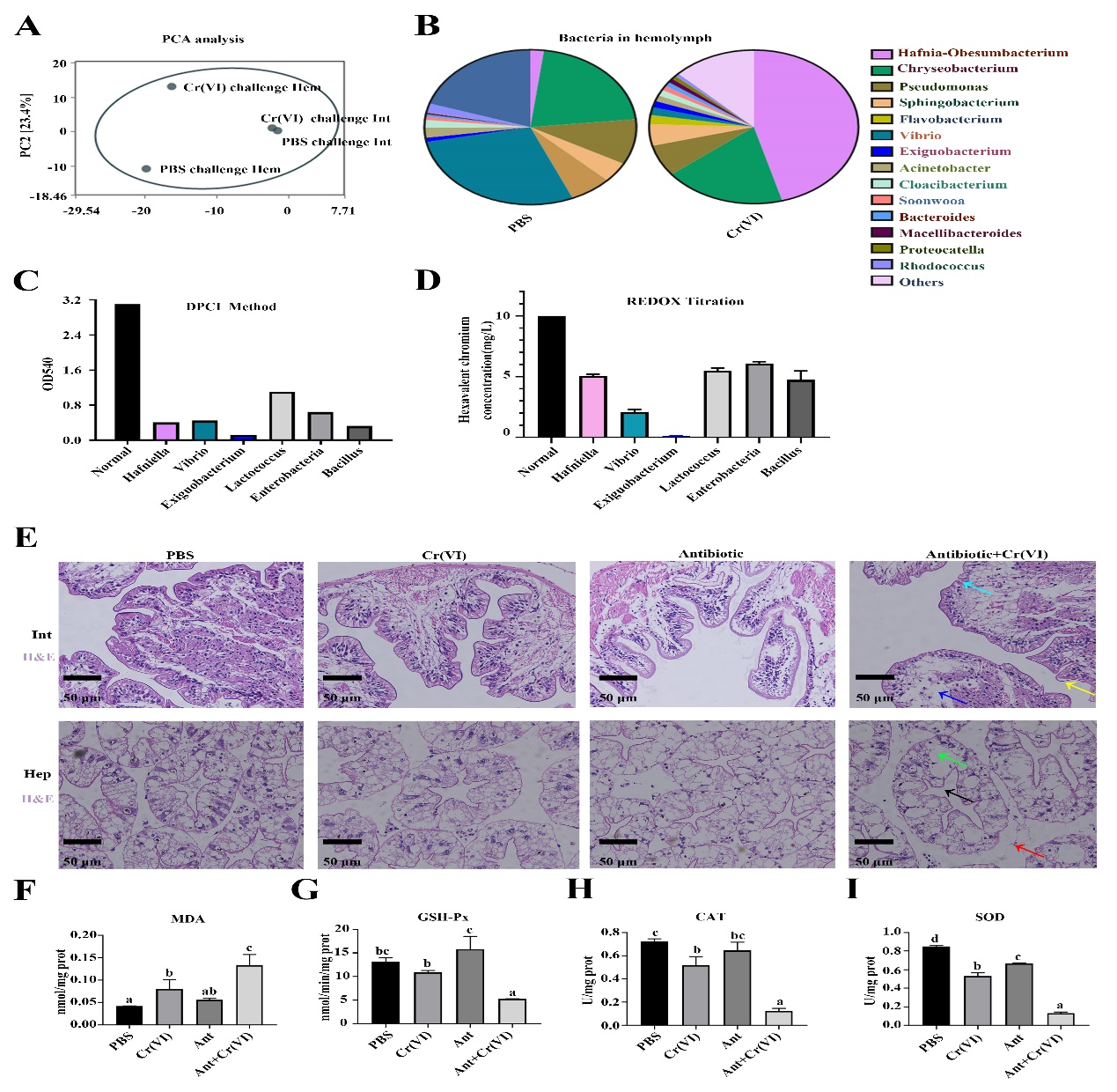 图1 Cr6+刺激诱发血淋巴菌群改变、血液菌群抑制Cr6+对虾的损伤