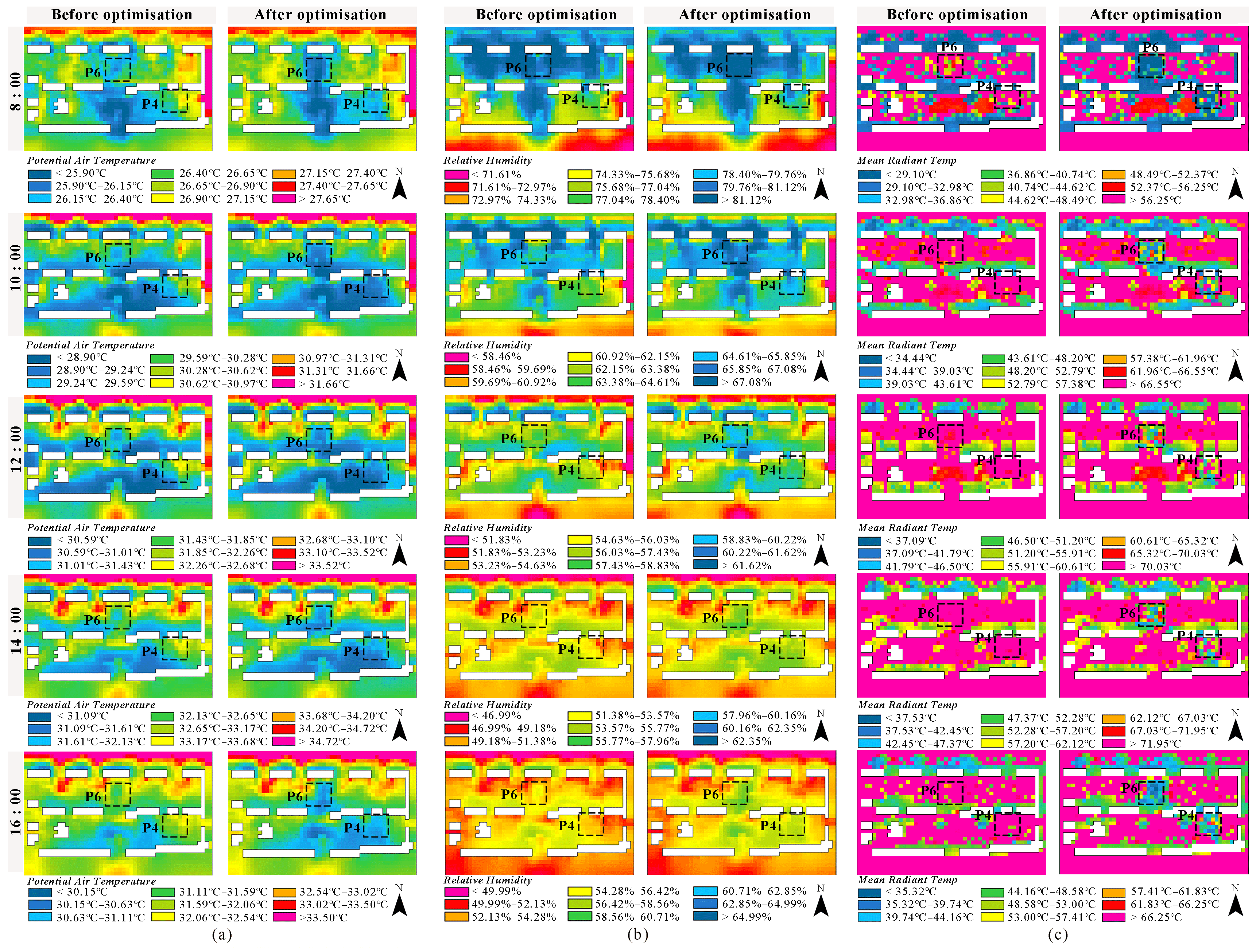 图2 夏季高层居住区景观优化前与优化后的数值模拟对比