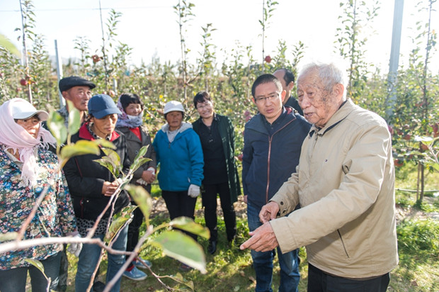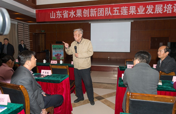11月8日至9日,山东省水果创新团队组织专家到五莲县开展技术服务。专家中有一位老人特别引人注目,他就是89岁的中国工程院院士束怀瑞教授。