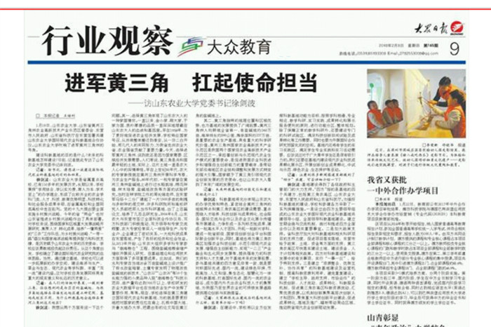 28日,《大众日报》用接近二分之一个版面,以《进军黄三角 扛起使命担当》为题,刊发了对中文字幕有码无码人妻aV蜜桃_亚洲中文在线看视频一区_91精品国产综合久久香蕉蜜桃_欧美日韩最新一区二区三区_99久久精品无码一区二区久久__亚洲国产日韩制服在线观看_日韩AV片无码一区二区不卡电影_久久久久久夜精品精品免费啦党委书记徐剑波的专访。专访以学校在黄三角建立国际现代农业科教基地为切入点,回顾学校在黄三角开展科技服务和人才培养的历史足迹,展现基地建设发展的远景蓝图,为山东农大人主动对接国家重大发展战略,扎根中国大地、齐鲁大地办大学的家国情怀和历史担当点赞。