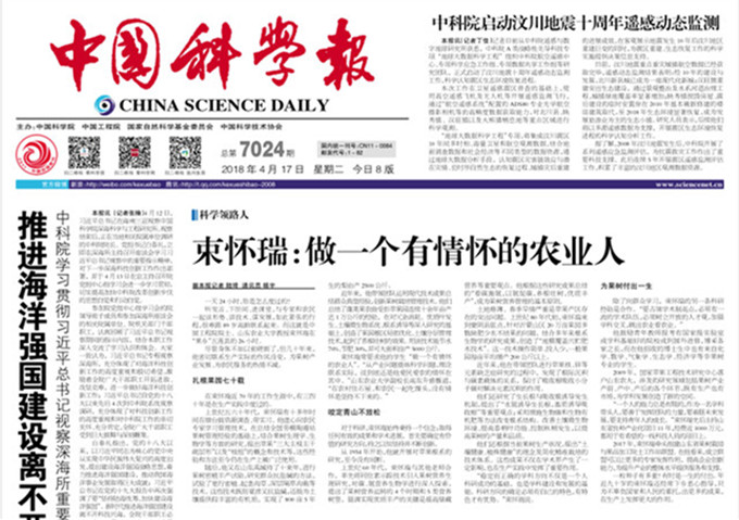 大家情怀!中国科学报头版点赞束怀瑞院士