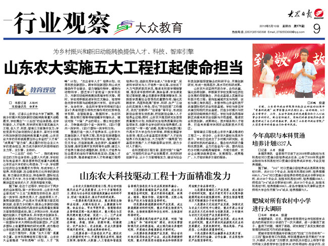 文章对学校实施科技驱动工程给予了特别关注,指出山东农大将主动对接现代农业产业发展需求,从十个方面精准发力,建设与社会科技创新链深度融合的科研平台,形成一批高层次、高水平的科研成果。