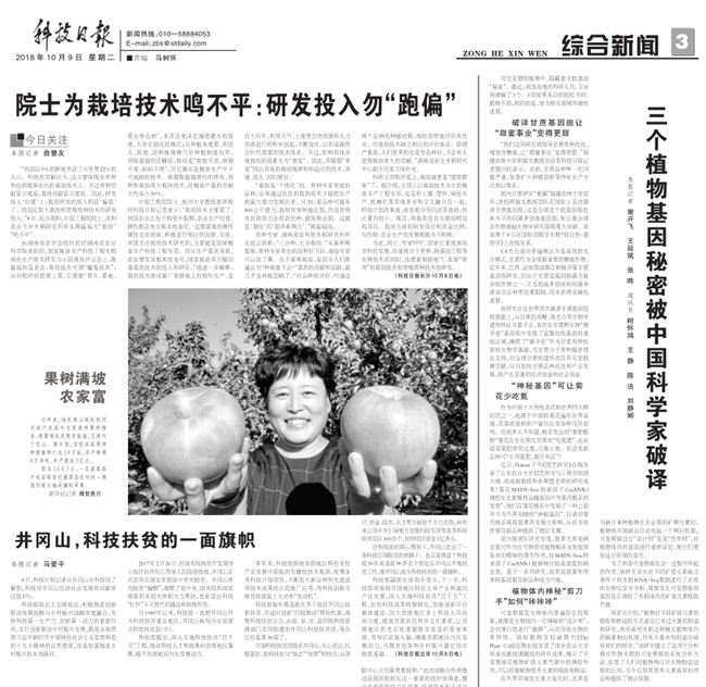 科技日报关注我校植物基因领域科技进展