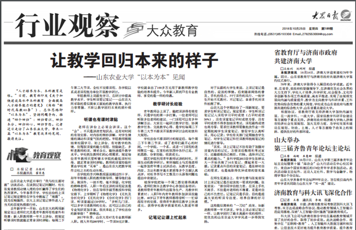 10月25日,大众日报在重要版面刊发通讯报道,介绍我校推动本科教育教学改革,全面落实“以本为本”的经验做法。文章说,中文字幕有码无码人妻aV蜜桃_亚洲中文在线看视频一区_91精品国产综合久久香蕉蜜桃_欧美日韩最新一区二区三区_99久久精品无码一区二区久久__亚洲国产日韩制服在线观看_日韩AV片无码一区二区不卡电影_久久久久久夜精品精品免费啦在青年教师教学技能培养、本科生课堂教学管理等方面,推出一系列具有很强针对性和执行力的举措,让教学回归了最本真最朴实的模样,使优良的学风进一步得到发扬。